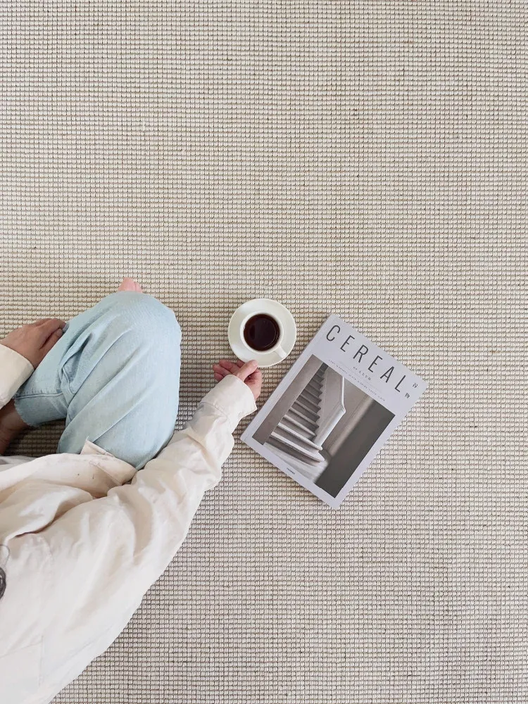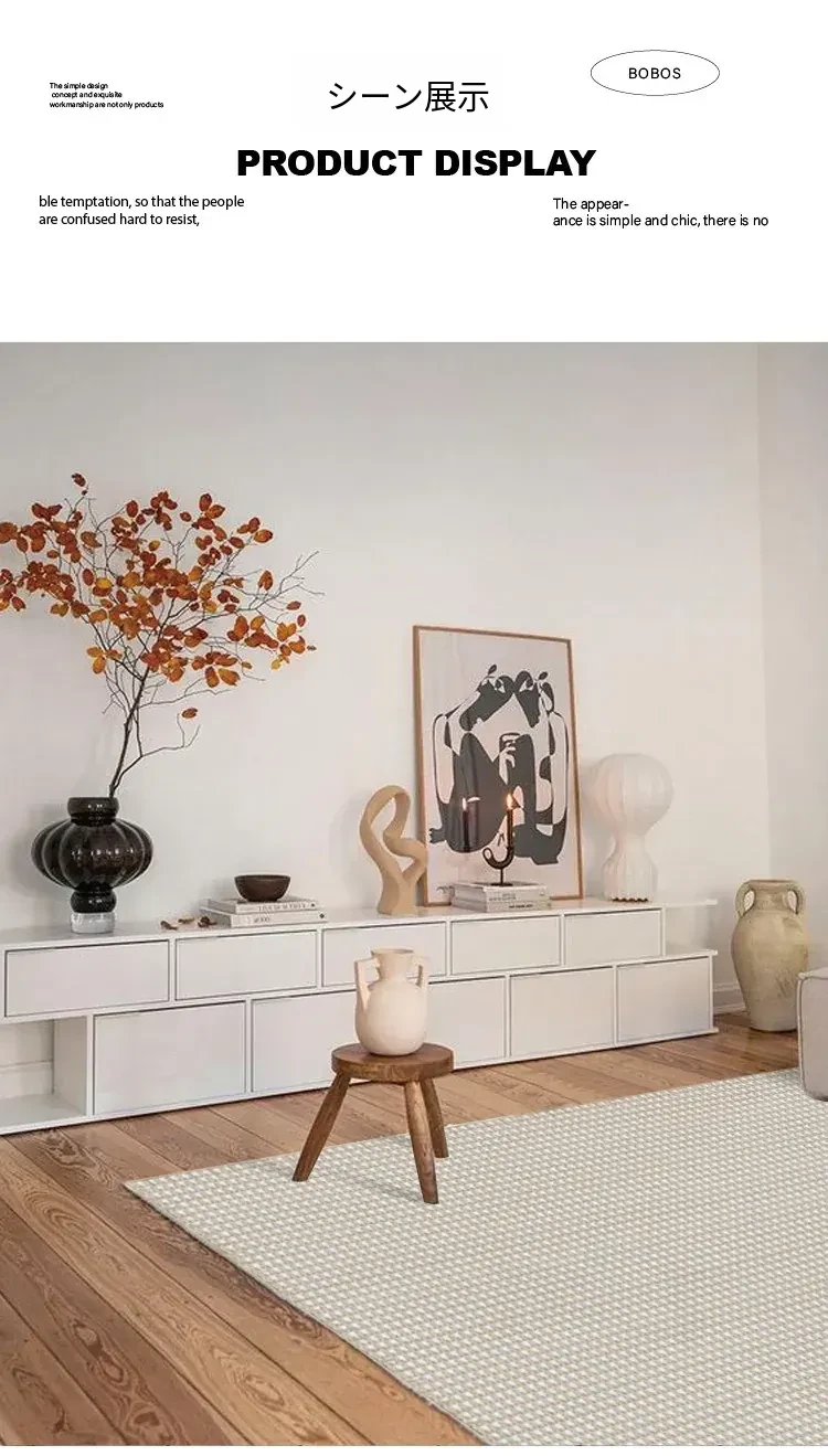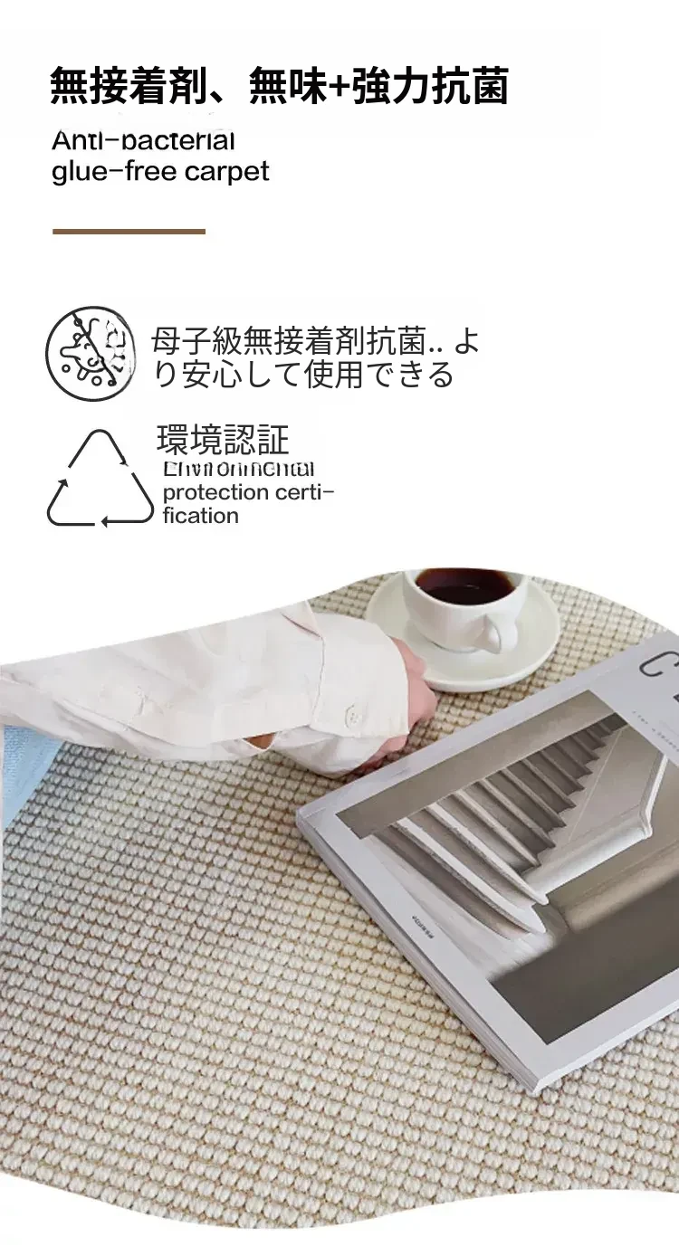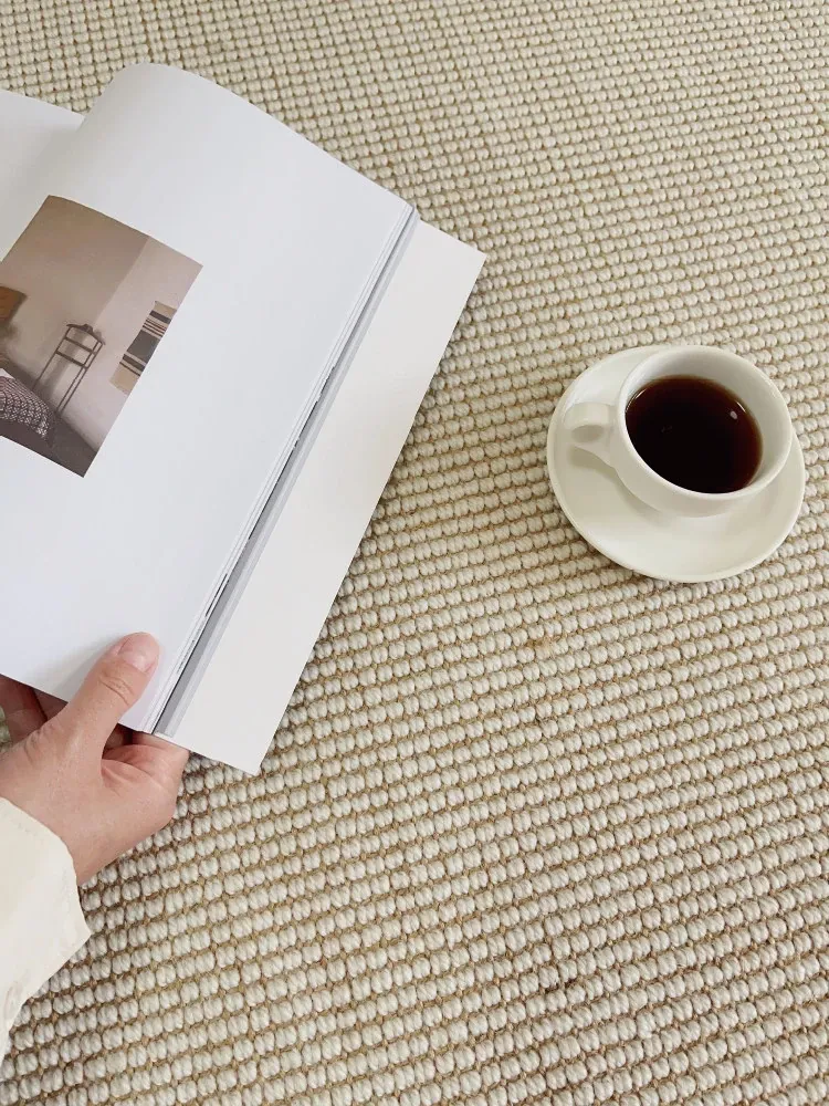 ラグジュアリーな雰囲気を演出するシンプルなデザインの天然ジュート&ウールラグ。和の美しさを感じる侘び寂びスタイル、北欧風の四季を通じてお使いいただける、リビングや寝室にぴったりの高級マットです。