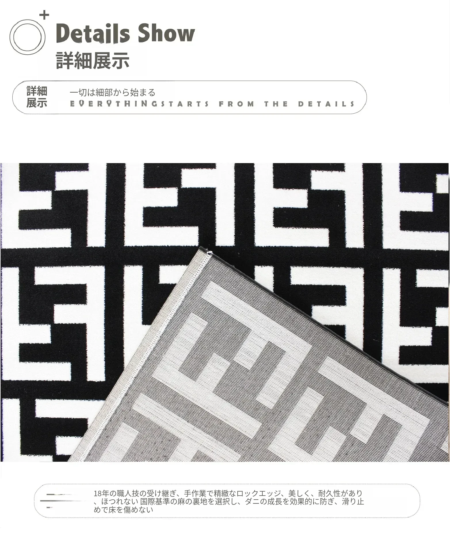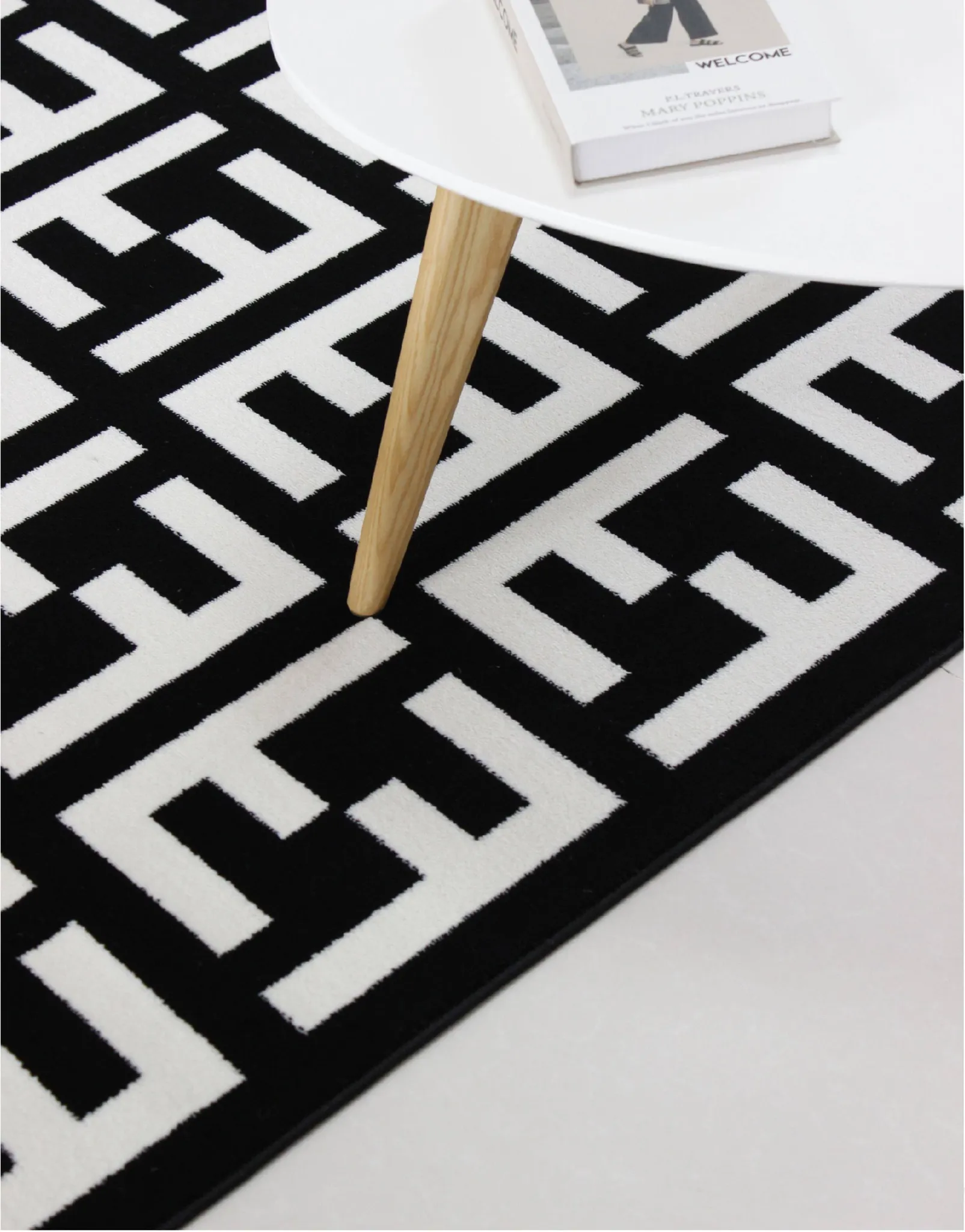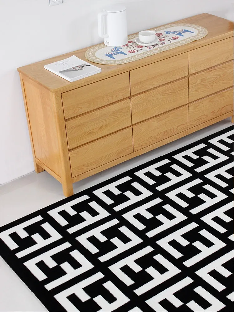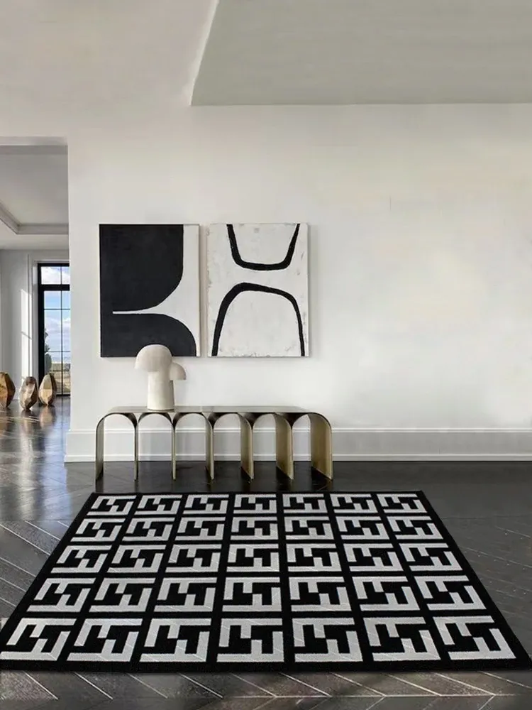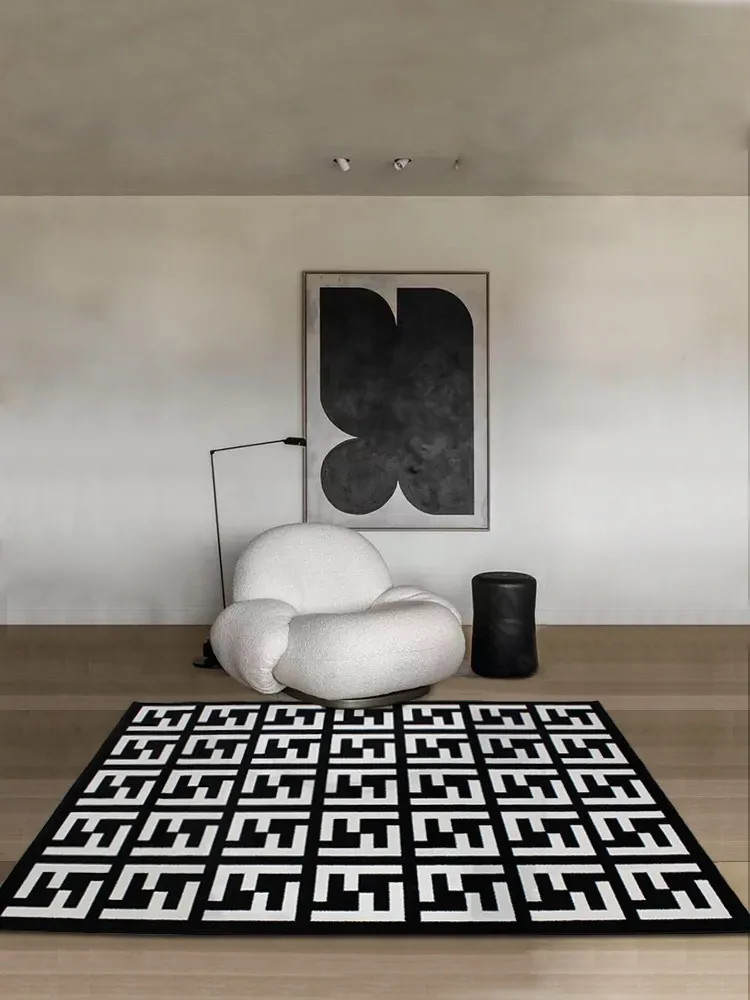 モダンで高級感あふれるポストモダンスタイルのラグ、北欧風のインスピレーションを受けたベッドサイドマット。シックなブラック&ホワイトのデザイン、大きなクッションのような心地よさで、リビングや寝室にぴったりのアイテムです!