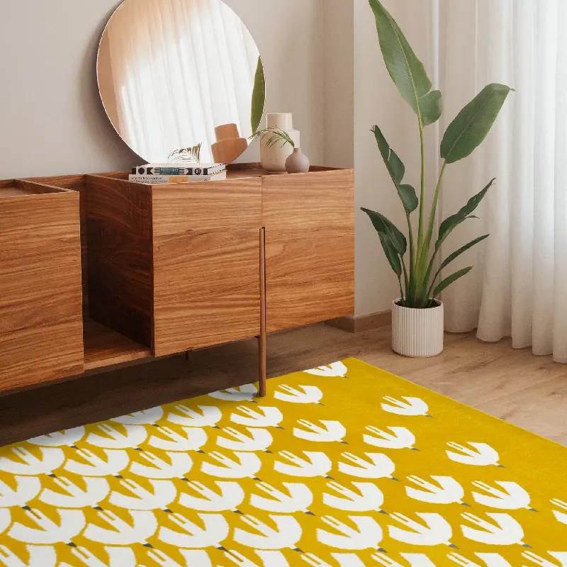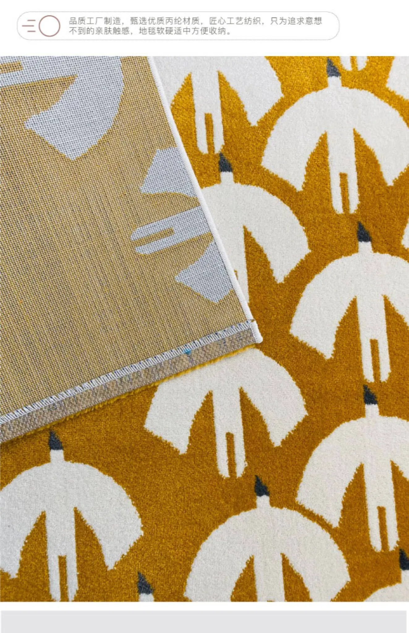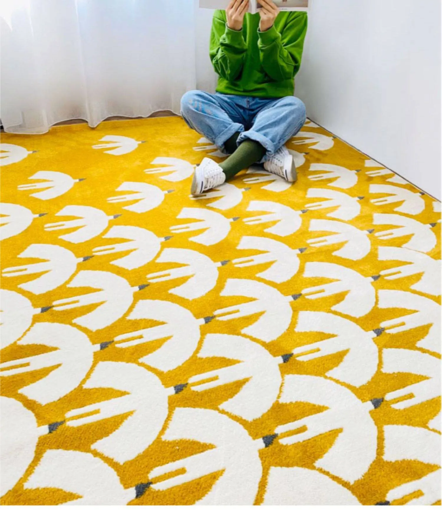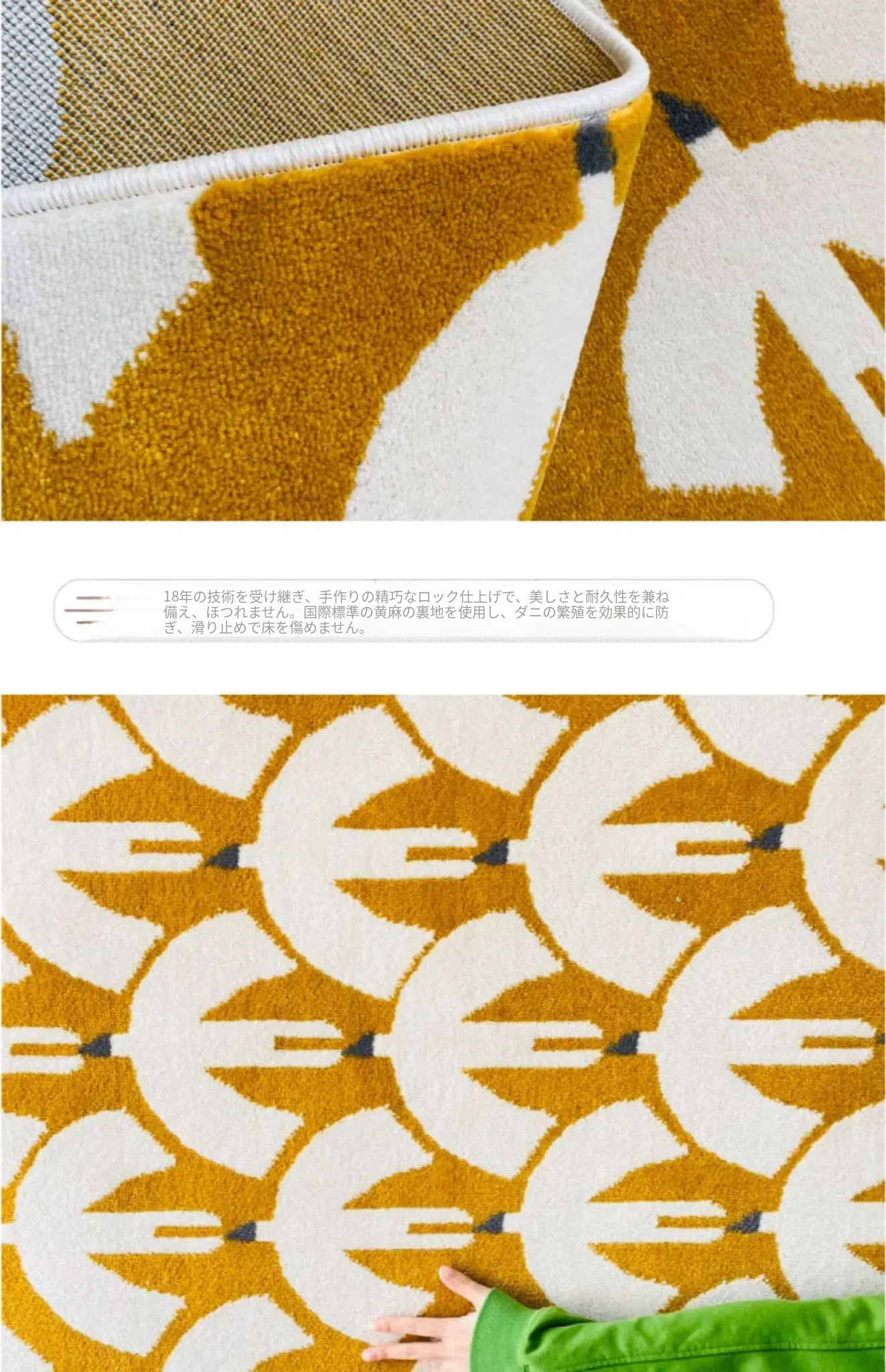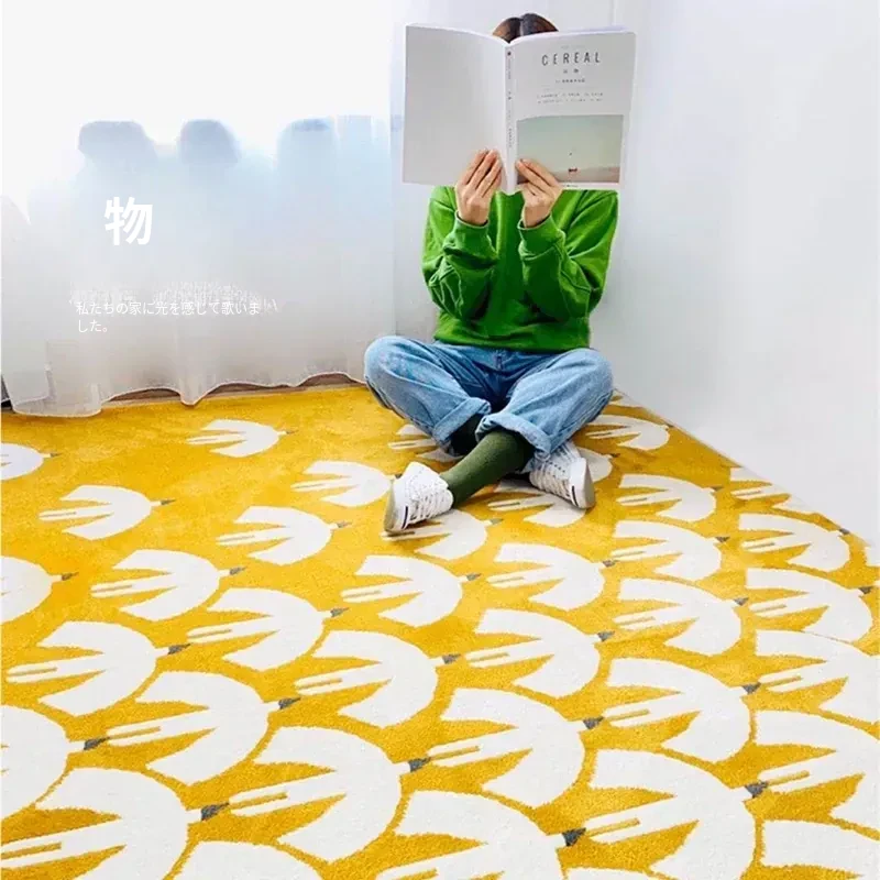 北欧スタイルのインテリア、夏にぴったりの大きなイエローカーペット!リビングやベッドルームに最適なティーテーブルマット。少女の夢を叶えるお部屋作りをサポートします。