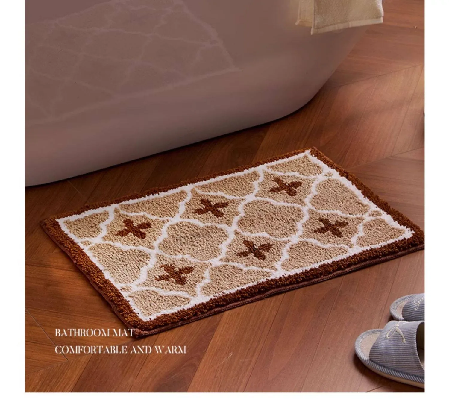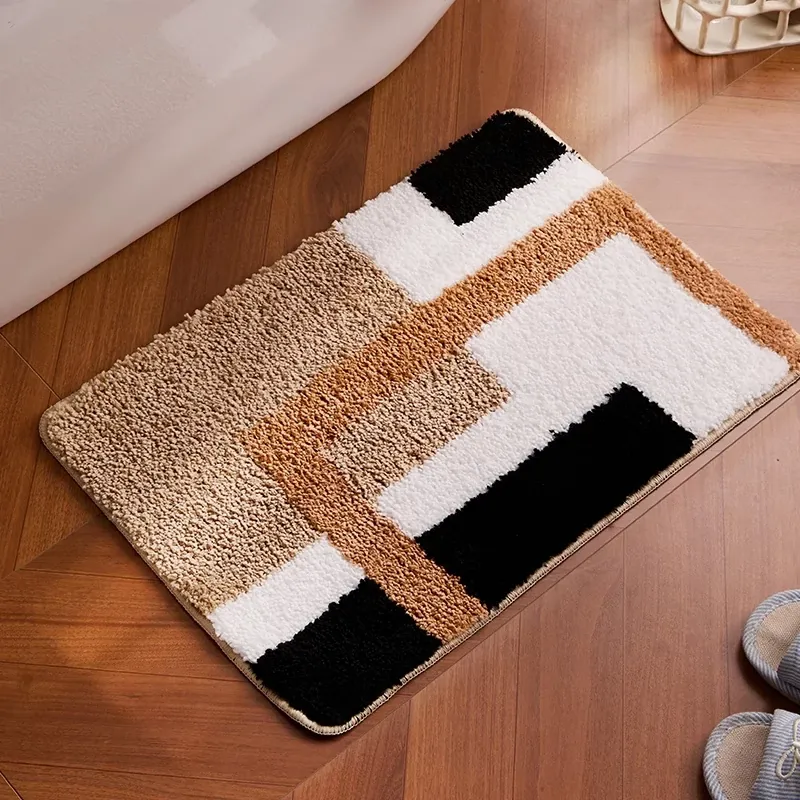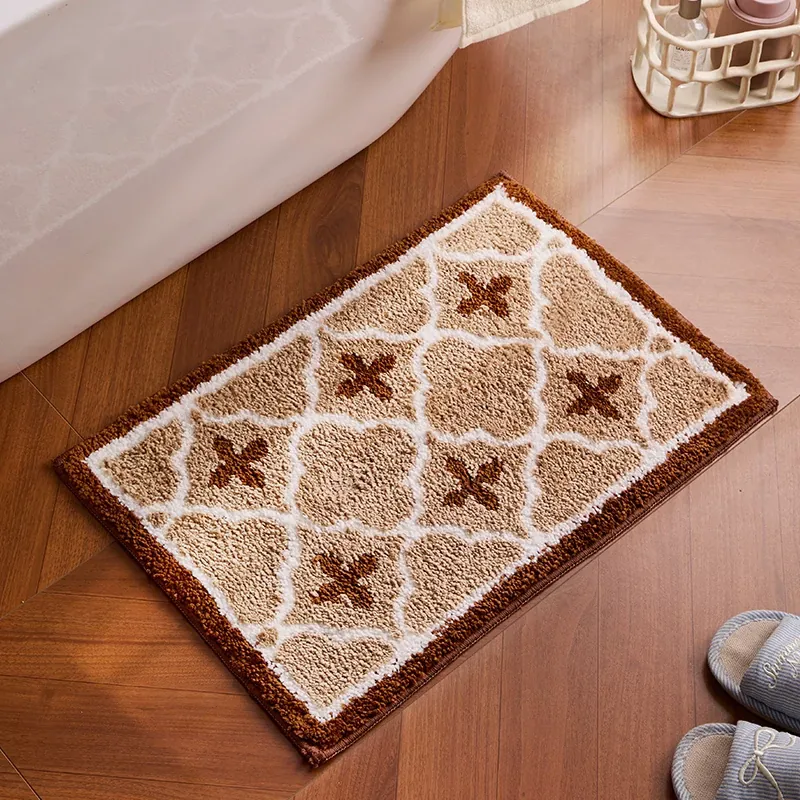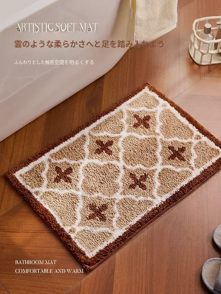 冬のレトロバスルームマット - 厚手のフランネル製、滑り止め機能付き!おしゃれなデザインで浴室を彩り、快適な足元を実現。家庭用に最適なトイレマットです。