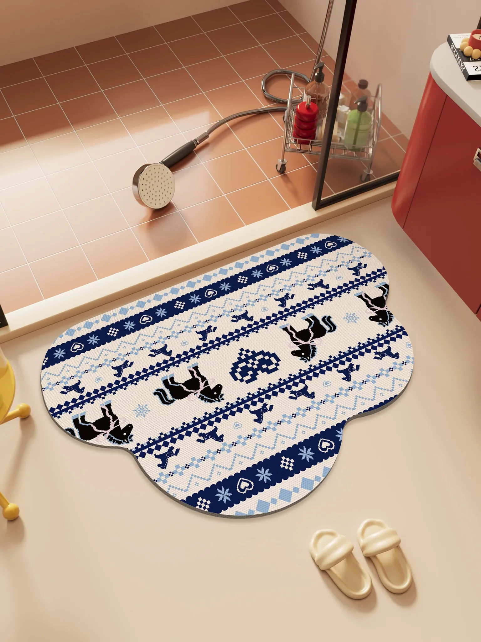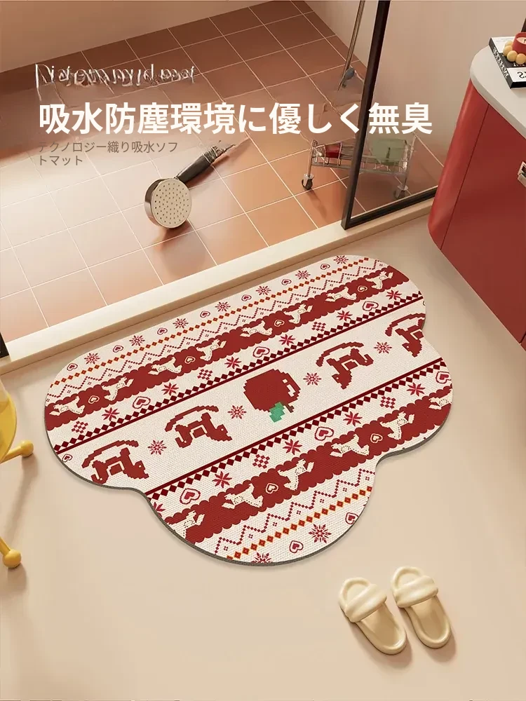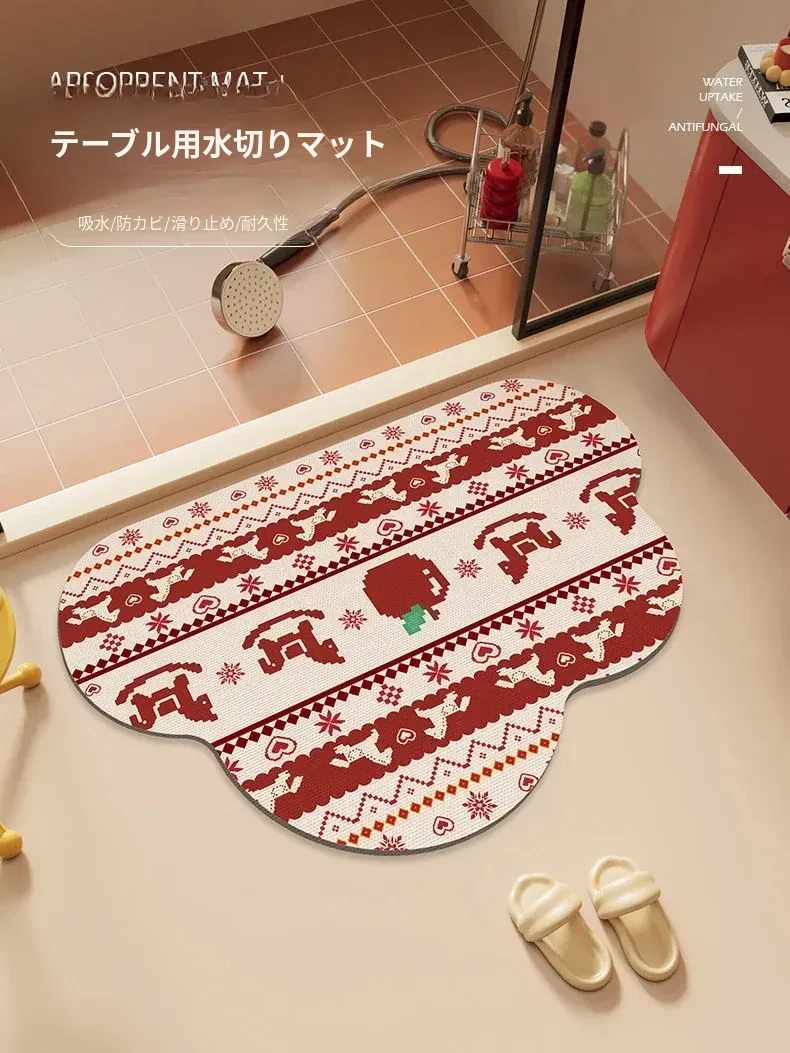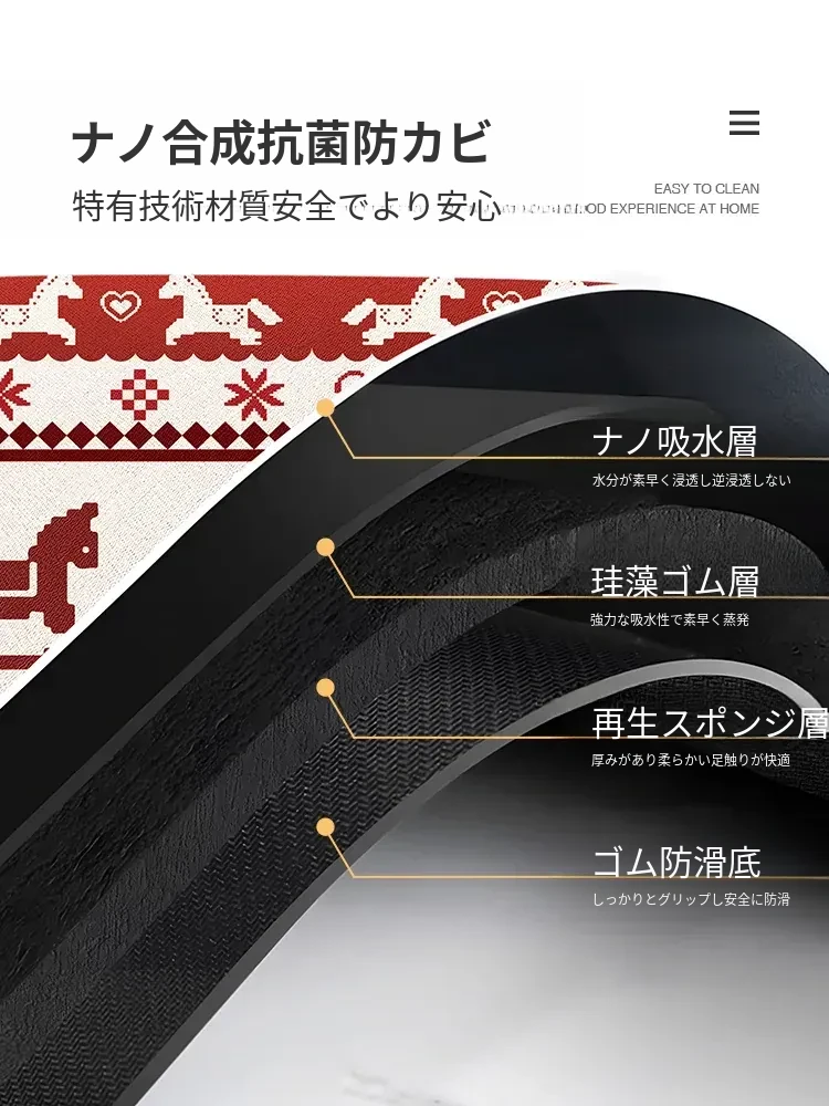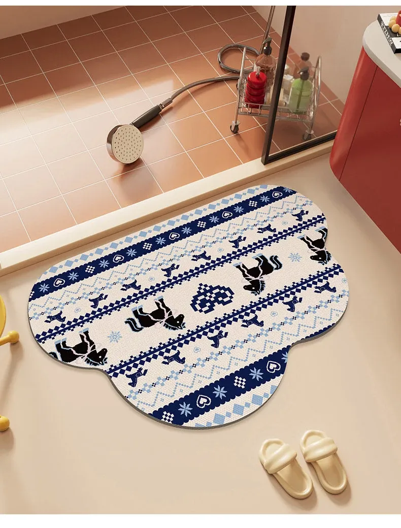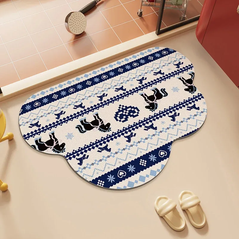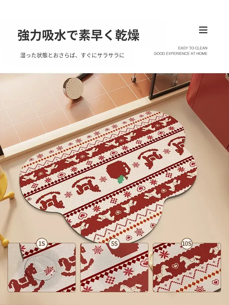 馬年の雲形バスルームマット - 吸水性抜群で滑り止め効果も!シリカゲル素材使用、フェアアイランド風のトイレ用マットで、玄関にも最適。おしゃれで機能的なバスルームを演出します!
